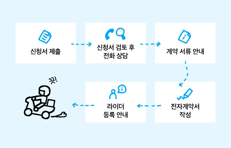 전화 상담할 때, 운행 희망 지역 및 배달료 등 운영 정책 전반에 대해 안내해 드려요.